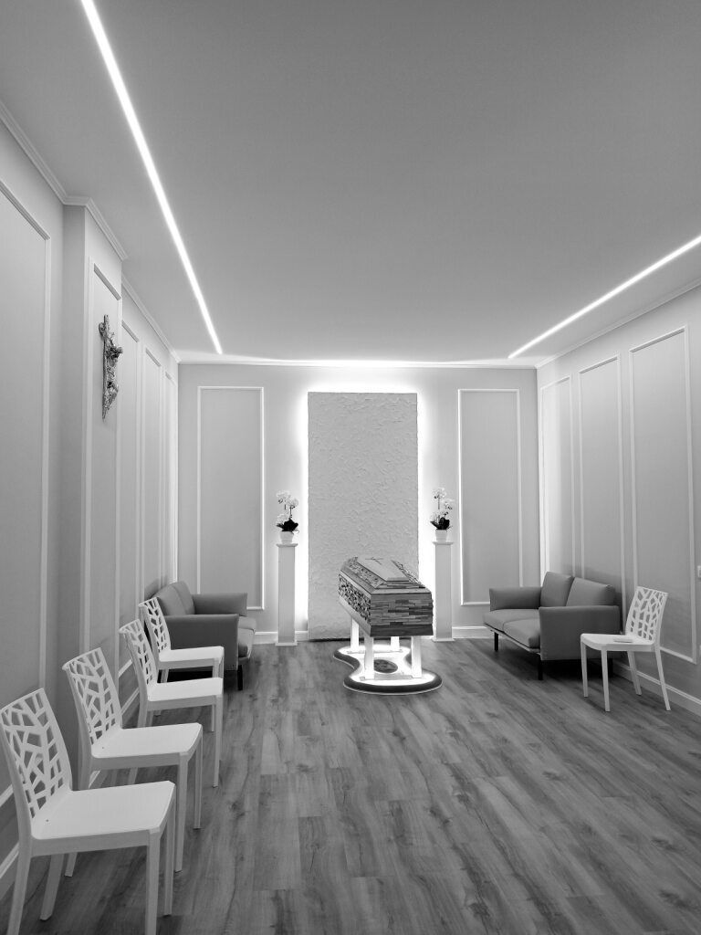 La nuova sala di commiato delle Onoranze Funebri Marchetta è una realtà recente, frutto di un accurato progetto di rinnovamento. Questo spazio è stato progettato e organizzato per accogliere, a richiesta delle famiglie del defunto, il feretro chiuso per l'esposizione e la celebrazione dei riti commemorativi.